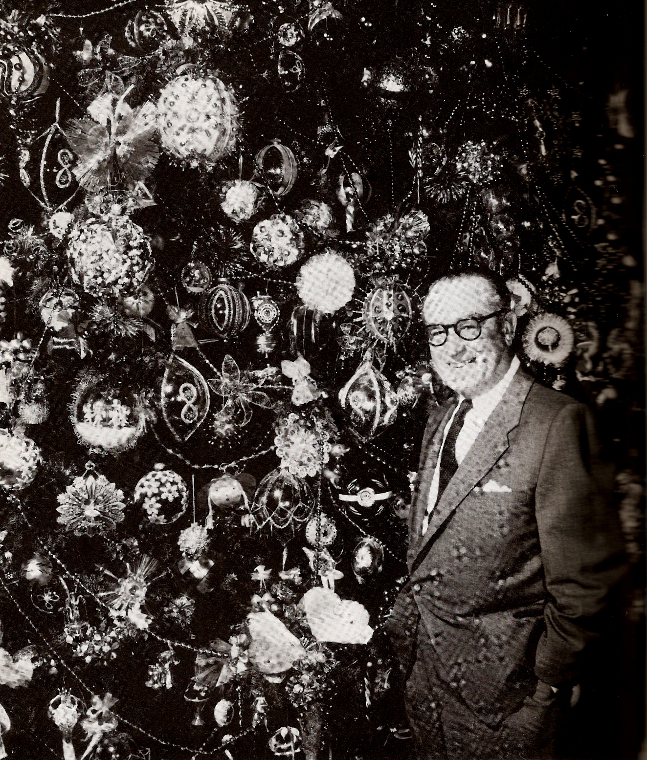Lloyd poses next to his Christmas tree in the 60s. By now his glass ornament collection had grown to over 8,000.